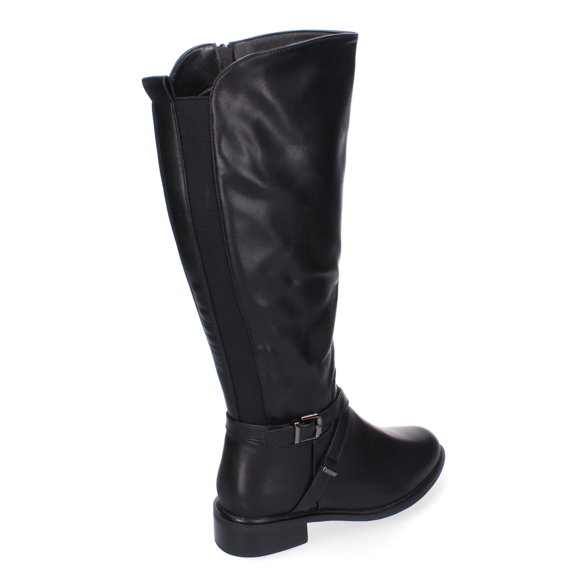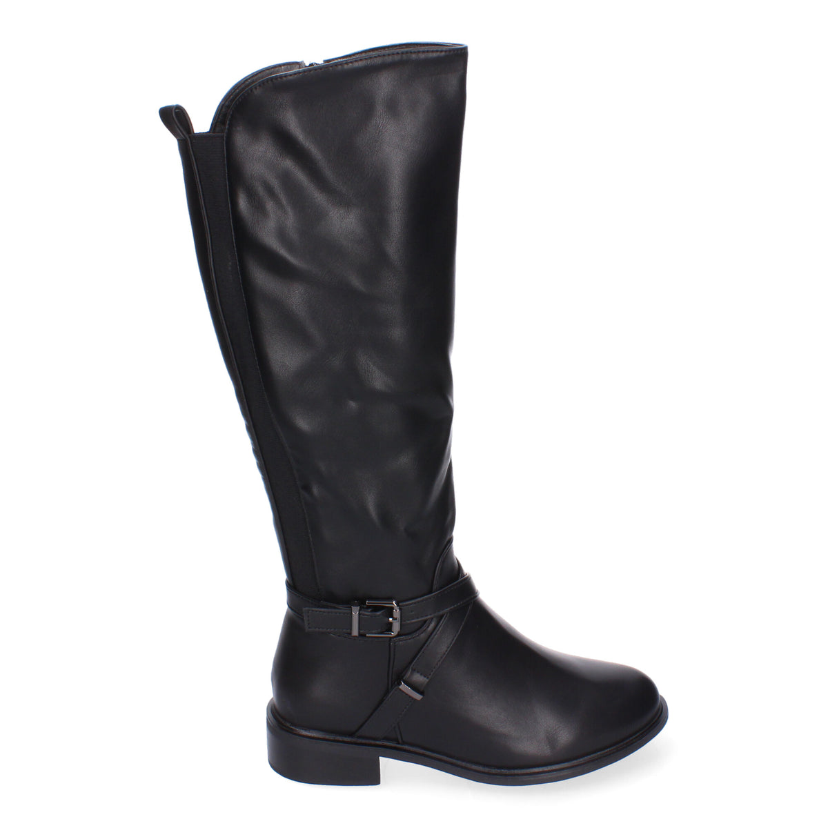 Botas Negras de Tacón para Mujer con Detalle de Hebilla y Cremallera Lateral