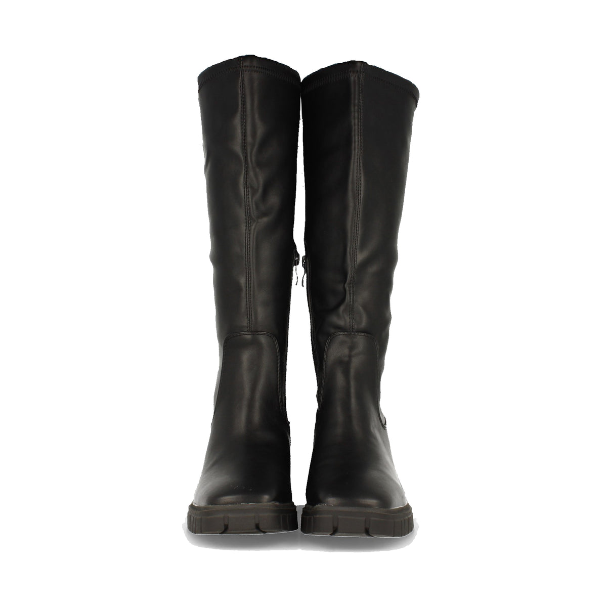 Estas botas negras de tacón medio y caña larga son la elección perfecta para la mujer que busca un equilibrio entre estilo y confort. Con un tacón de 6,5 cm y una plataforma de 2,5 cm, estas botas proporcionan la altura ideal para estilizar tu figura sin comprometer la comodidad, haciéndolas perfectas para usarlas durante todo el día.