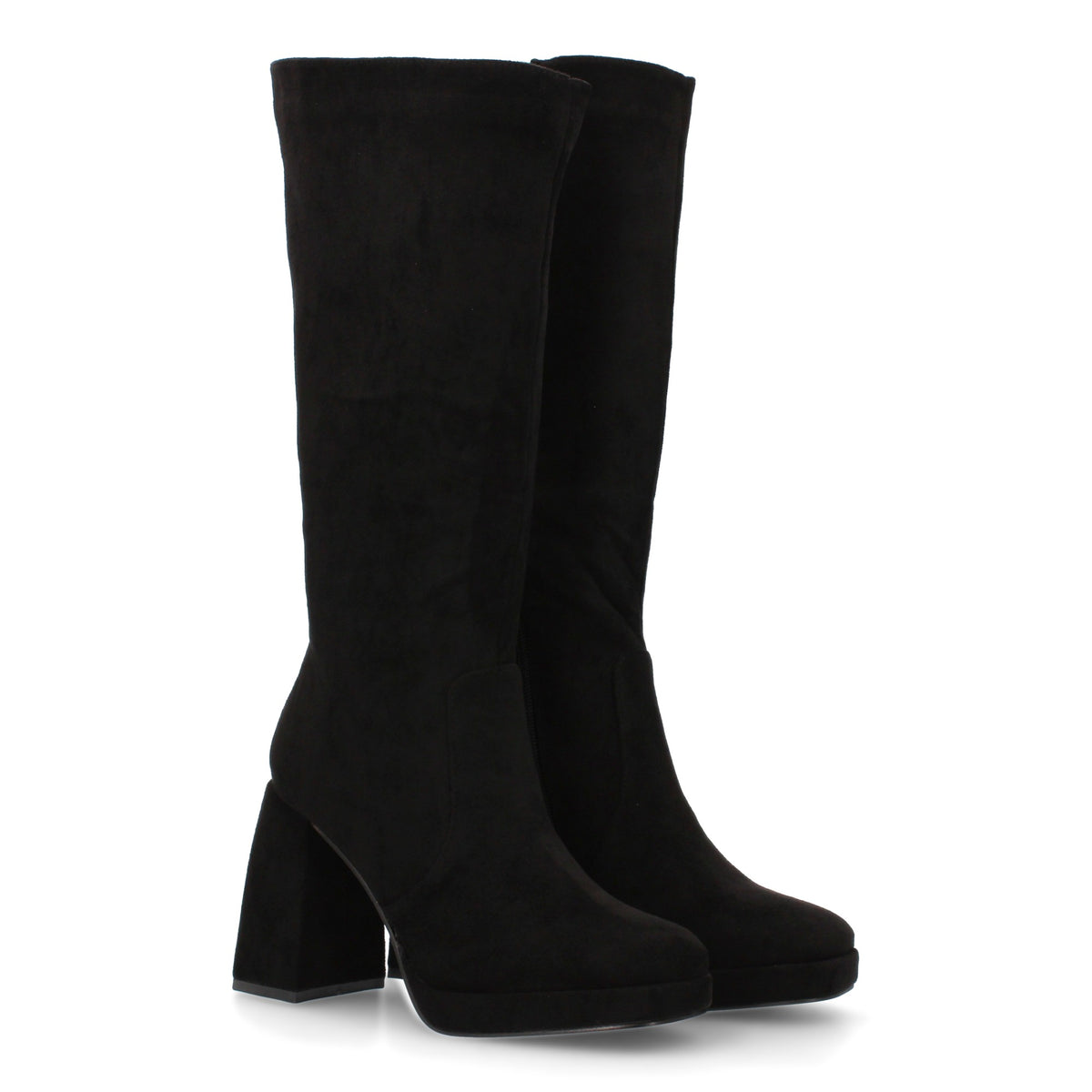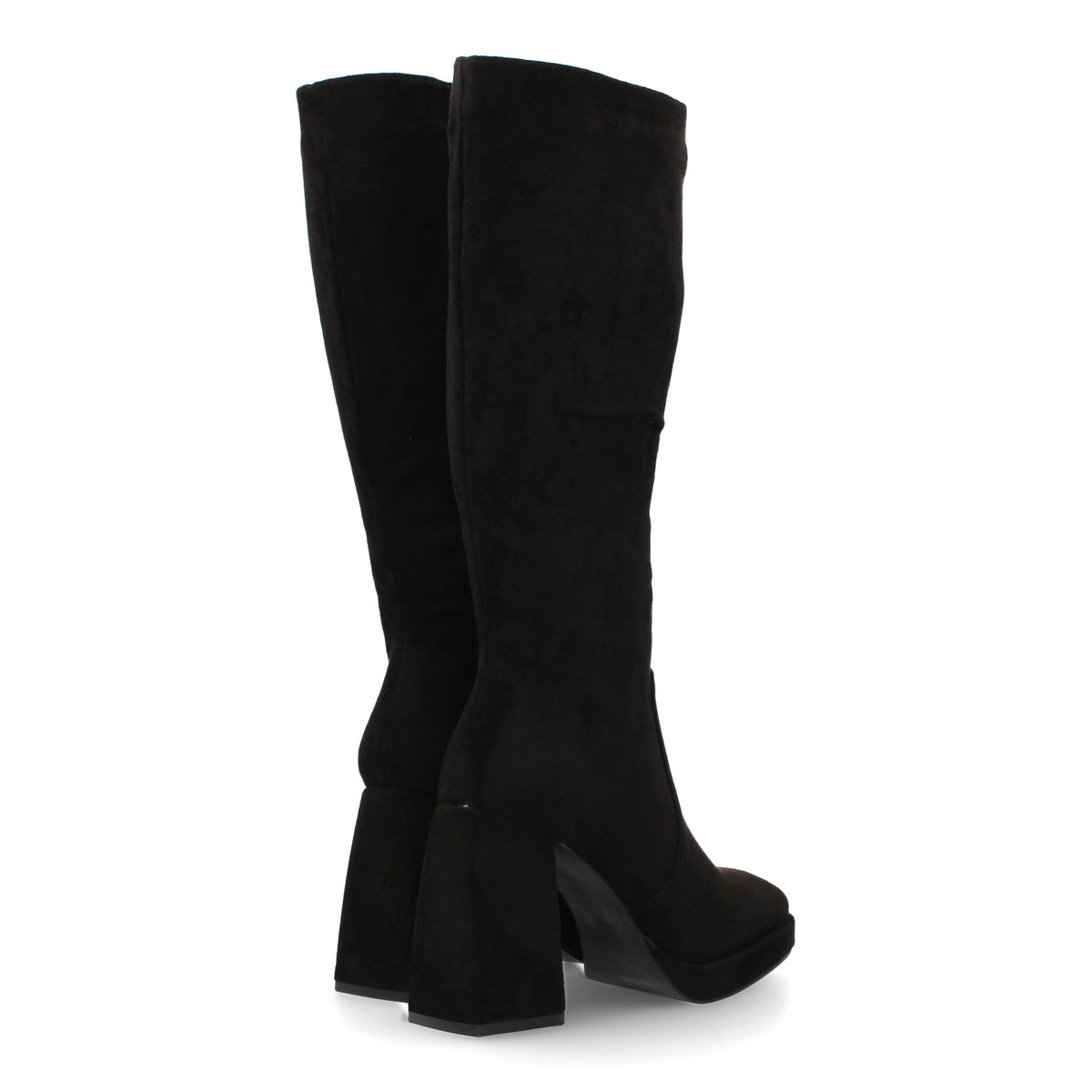 Botas Negras Altas con Plataforma y Tacón Ancho - Diseño Elegante y Atemporal