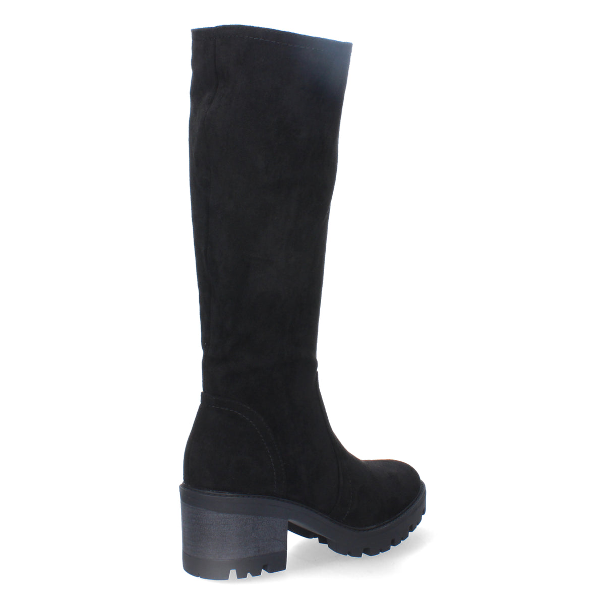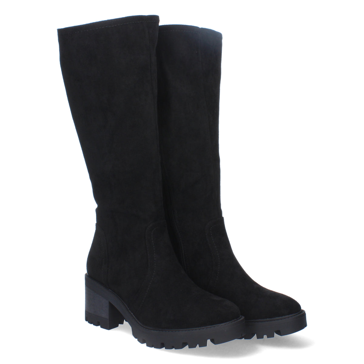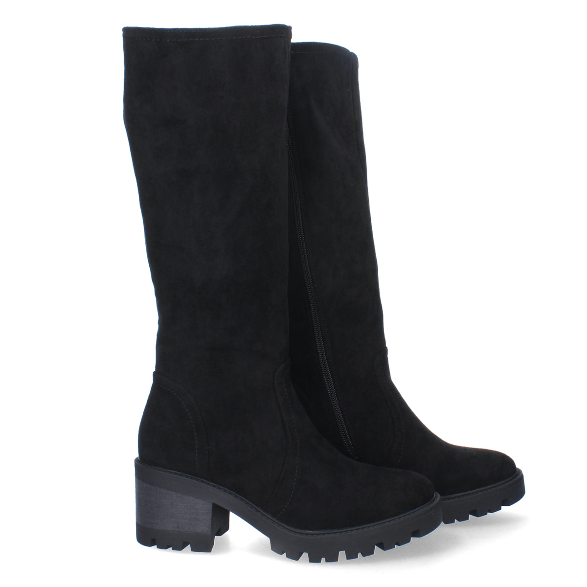 Botas Negras de Tacón Medio y Caña Alta para Mujer - Estilo y Comodidad con un Acabado Aterciopelado