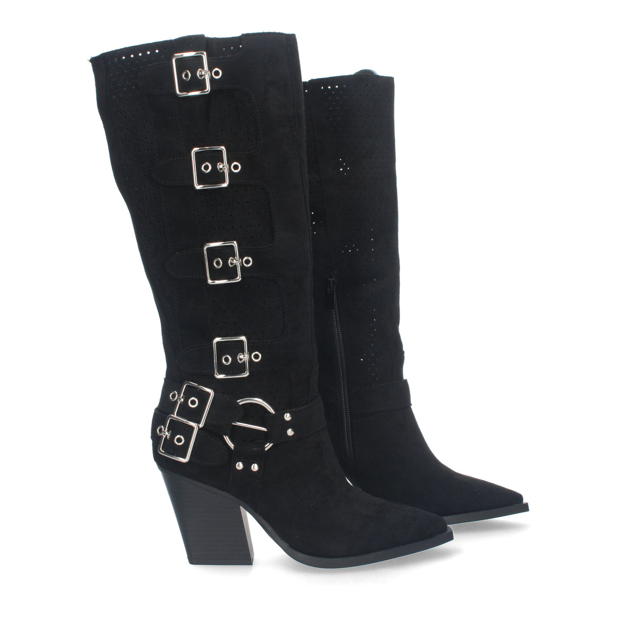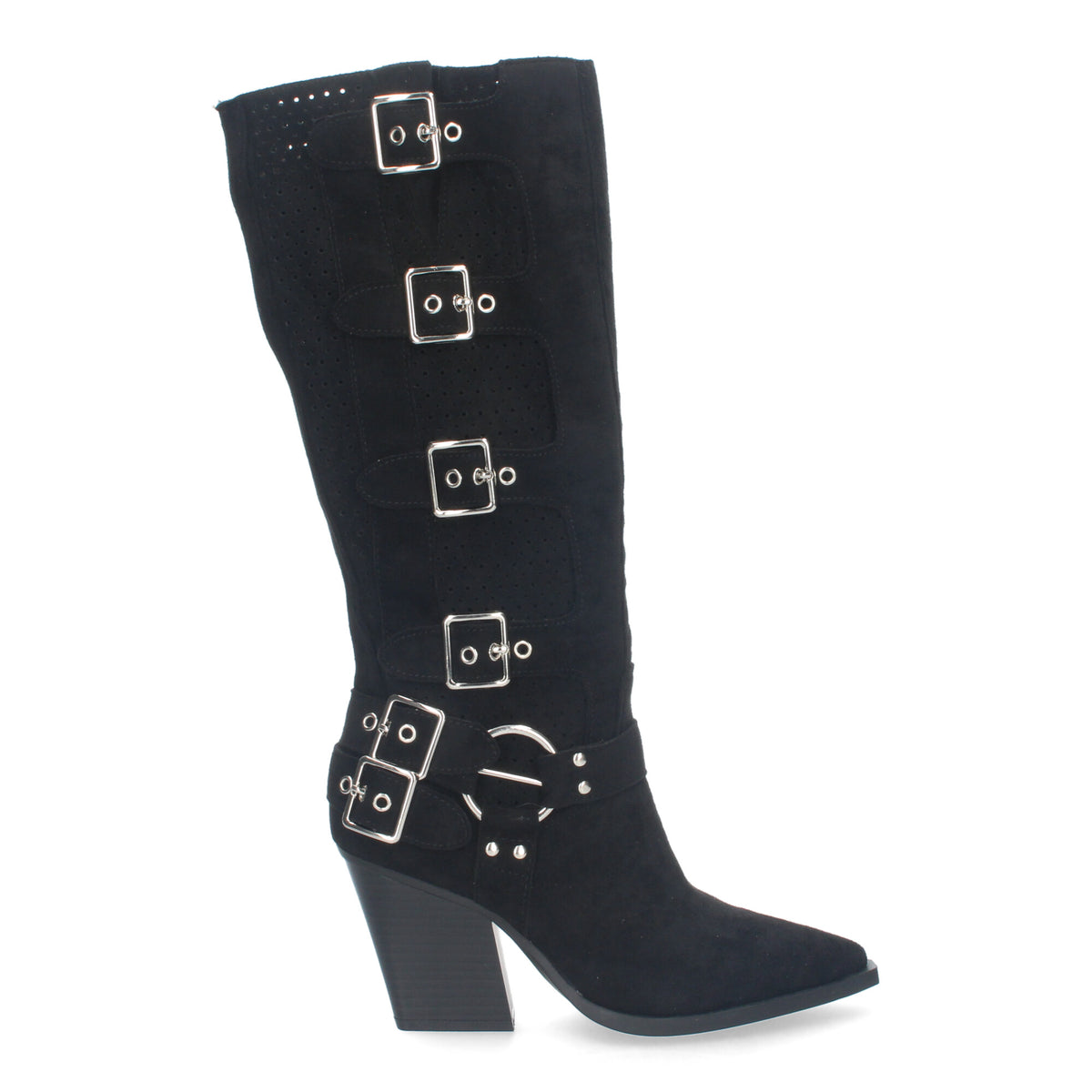 La caña alta calada no solo ofrece un toque sofisticado, sino que también permite una mayor transpirabilidad y un detalle visual llamativo. Las hebillas decorativas aportan un toque moderno y chic, mientras que el cierre de cremallera lateral facilita el calce y asegura un ajuste cómodo y seguro.