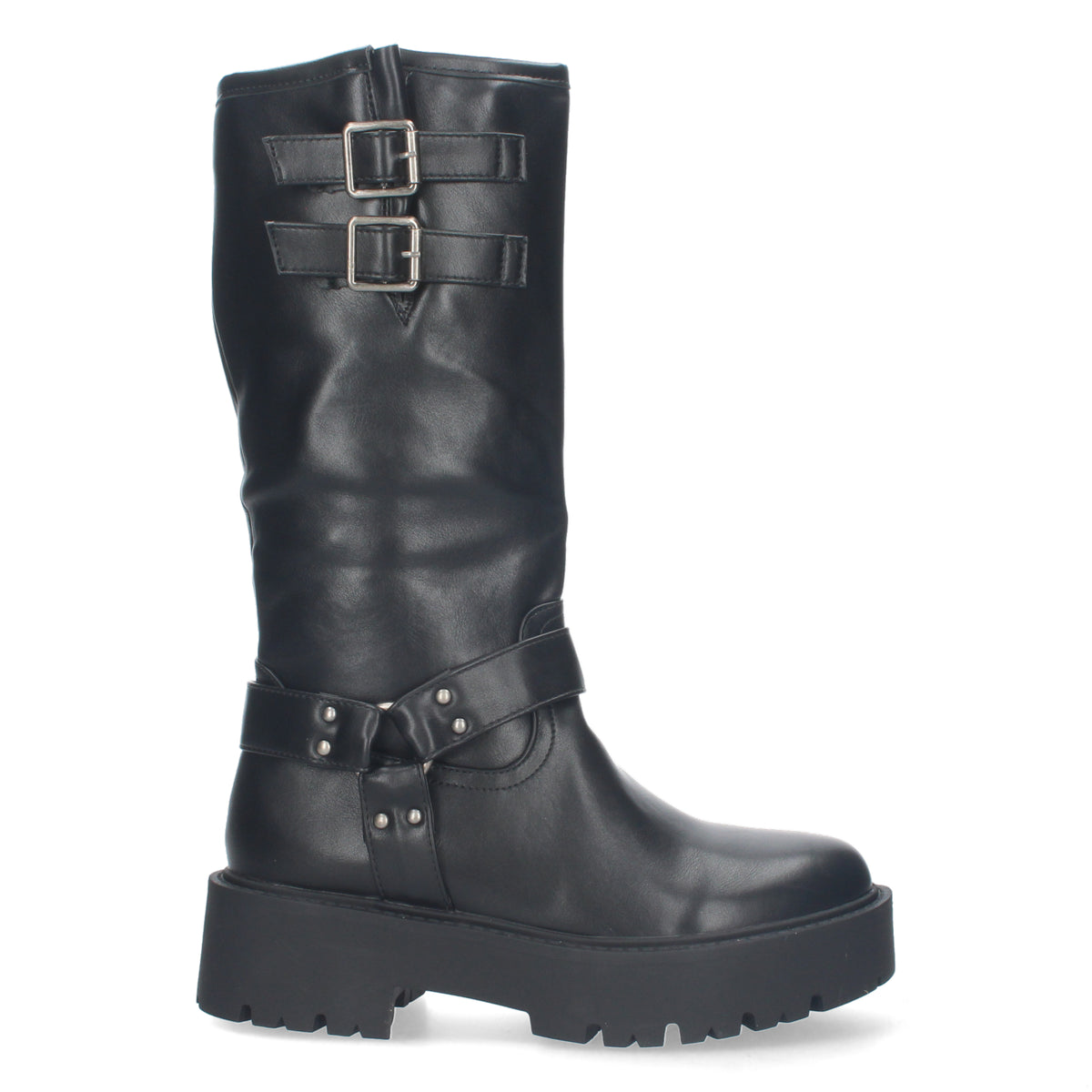 Botas Negras de Plataforma y Caña Alta Tipo Moteras para Mujer