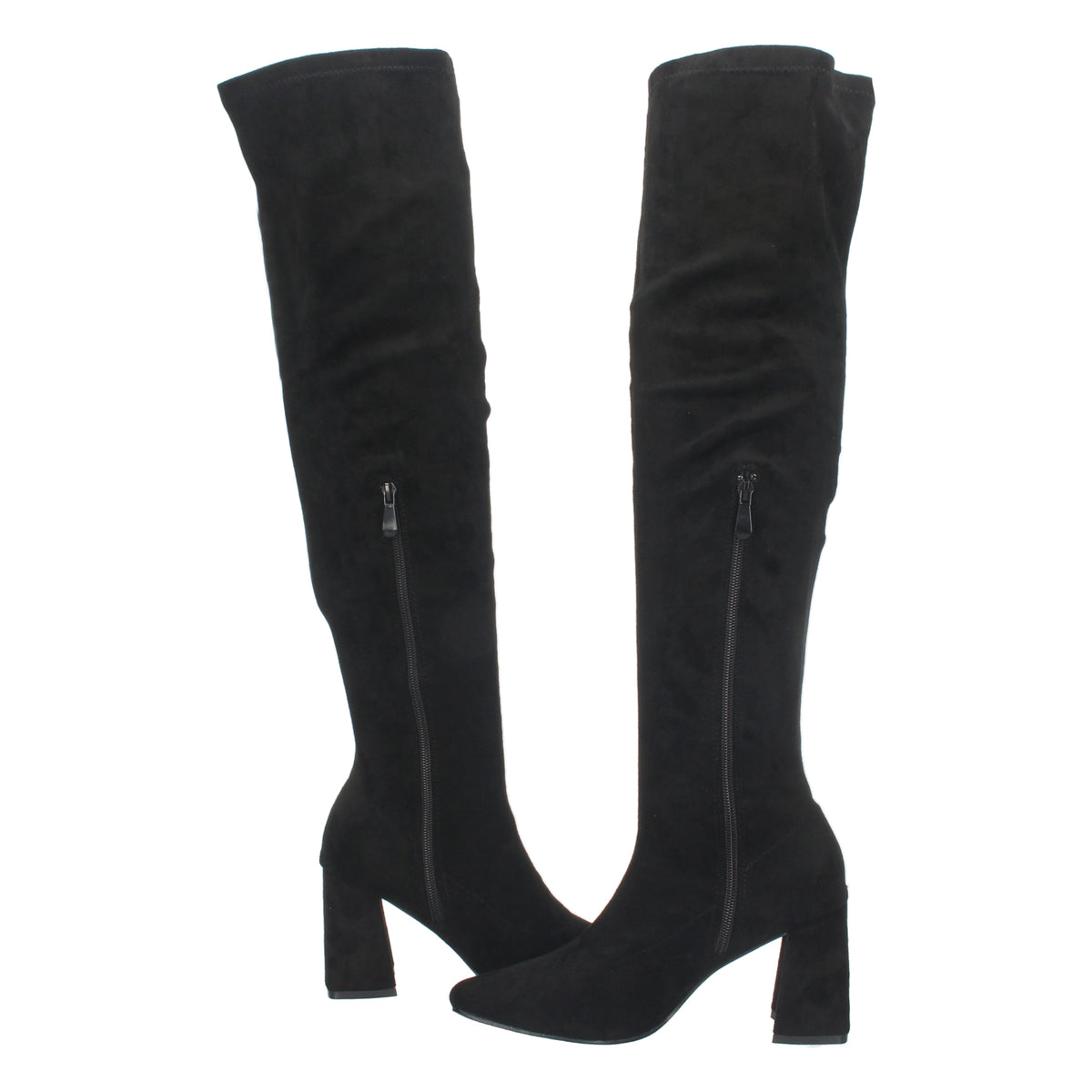 Botas Negras de Tacón Alto y Caña Alta para Mujer con Estampado Liso y Cierre de Cremallera