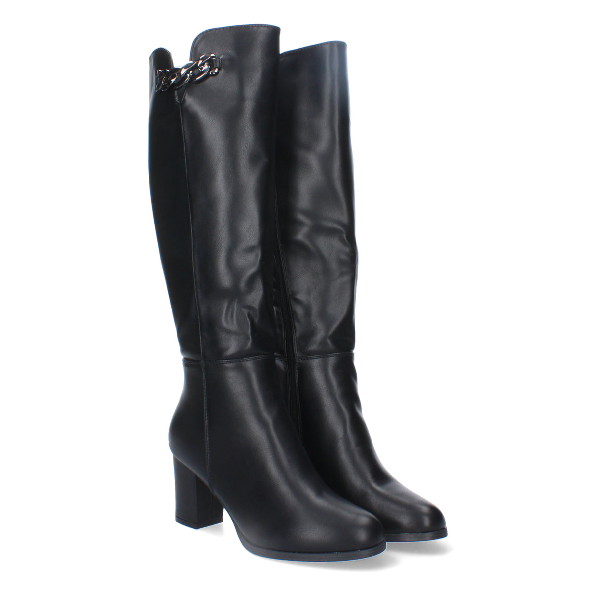 Botas Negras de Tacón Alto y Ancho con Caña Alta para Mujer