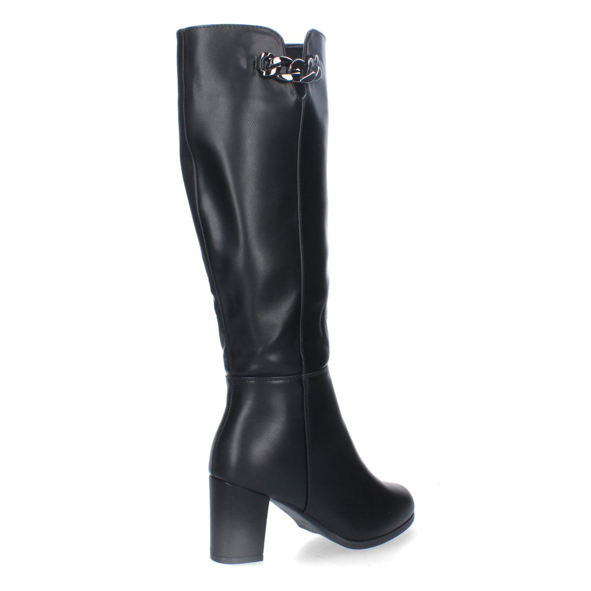 Estas botas negras de tacón alto y ancho son la opción perfecta para la mujer que busca un equilibrio entre comodidad y estilo. Con un tacón de 7 cm, estas botas ofrecen altura sin comprometer el confort, lo que las convierte en una excelente opción para el uso diario.