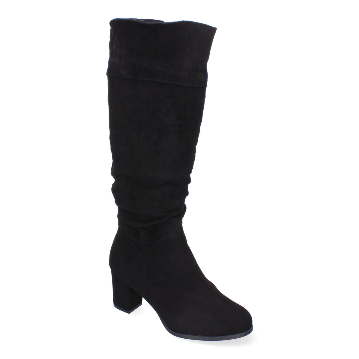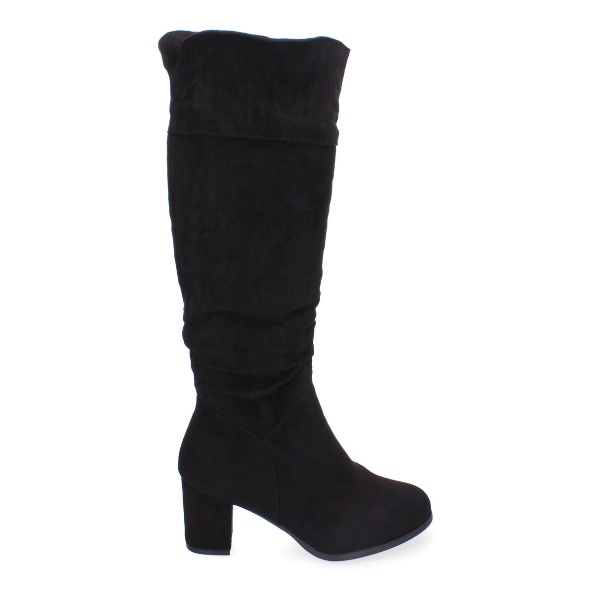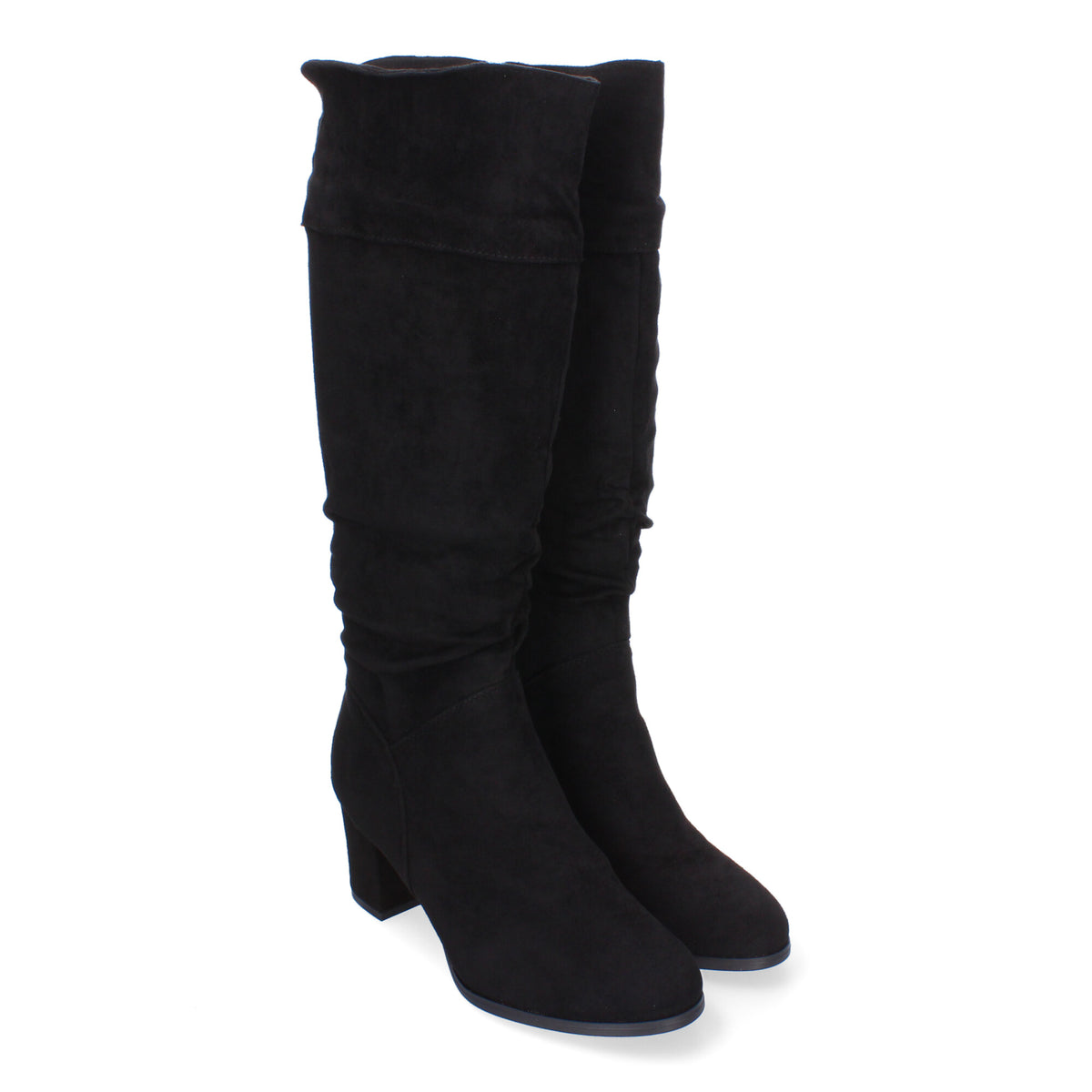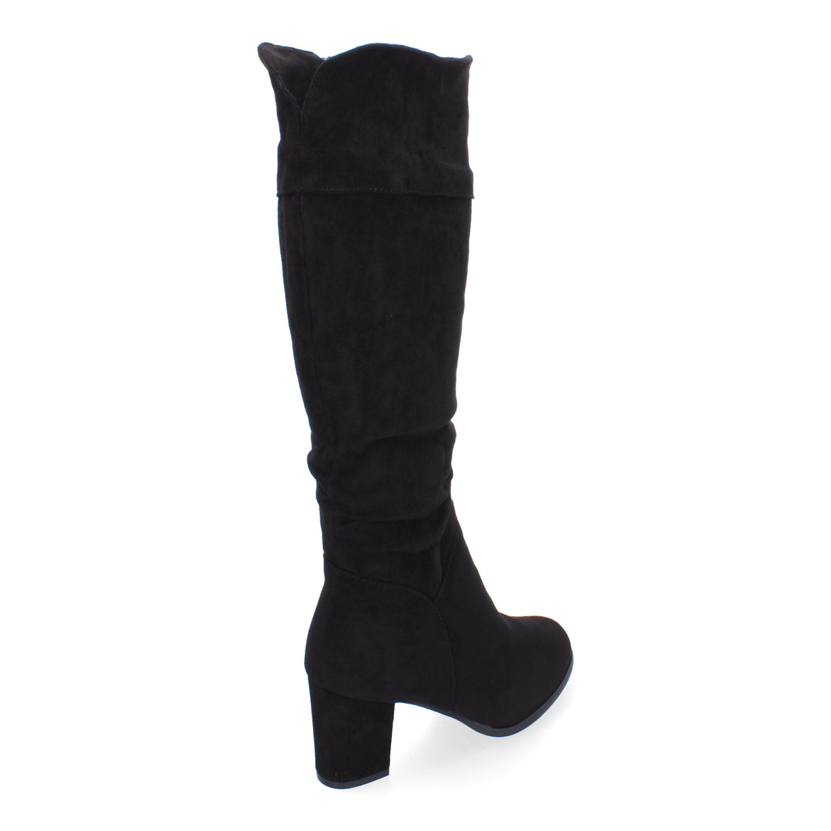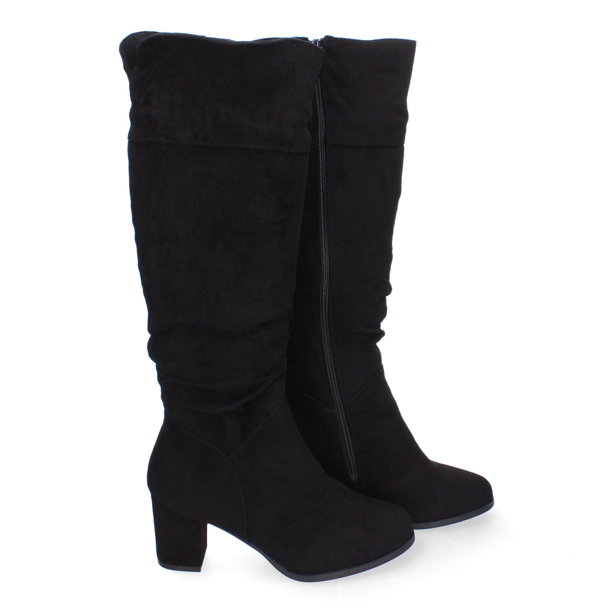 Botas Negras de Tacón y Caña Alta con Caña Arrugada