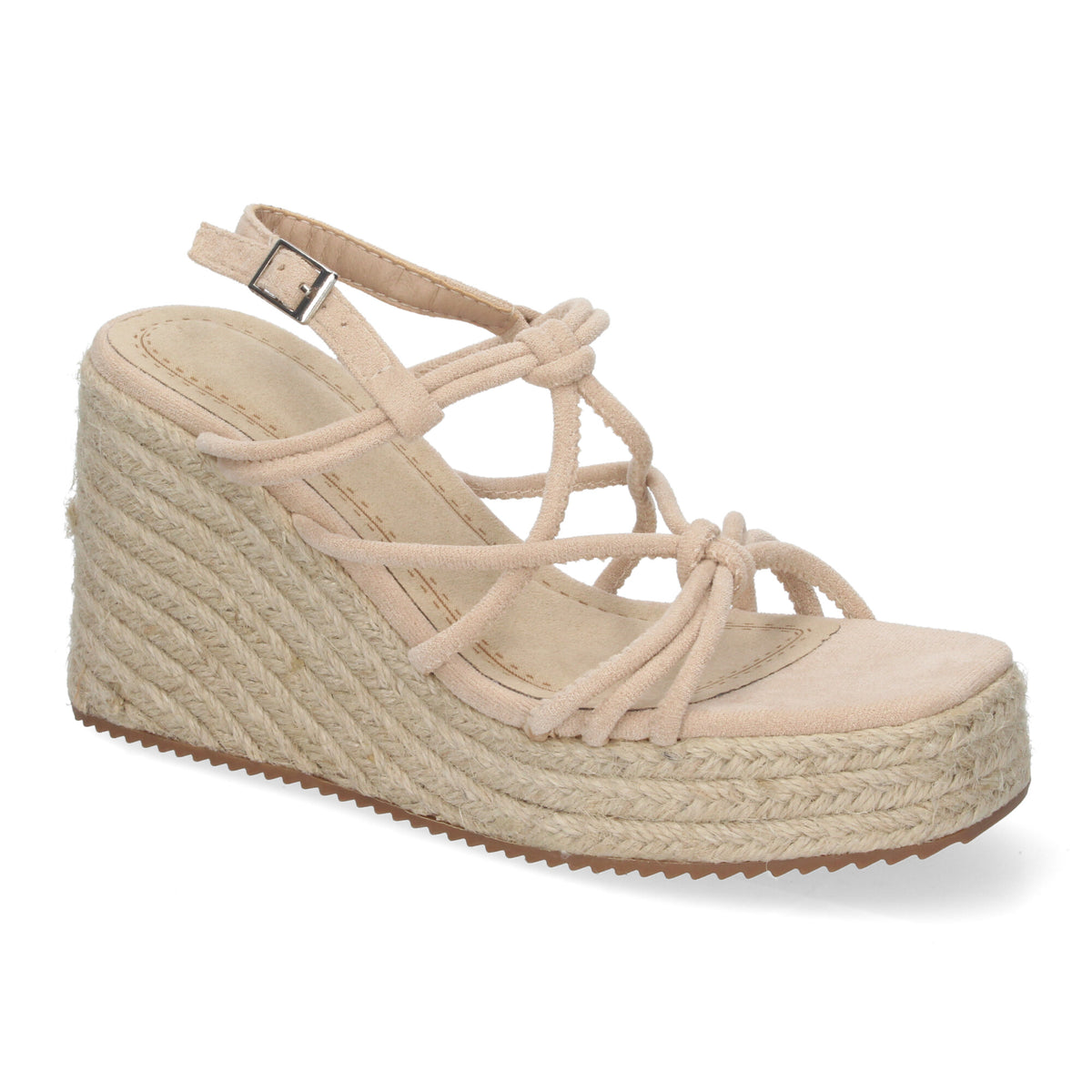 Sandalias Beige de Cuña con plataforma y esparto con adornos cruzados para Mujer