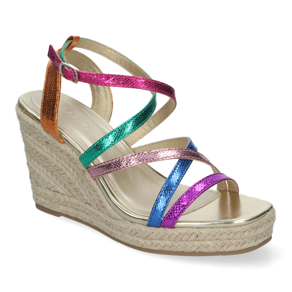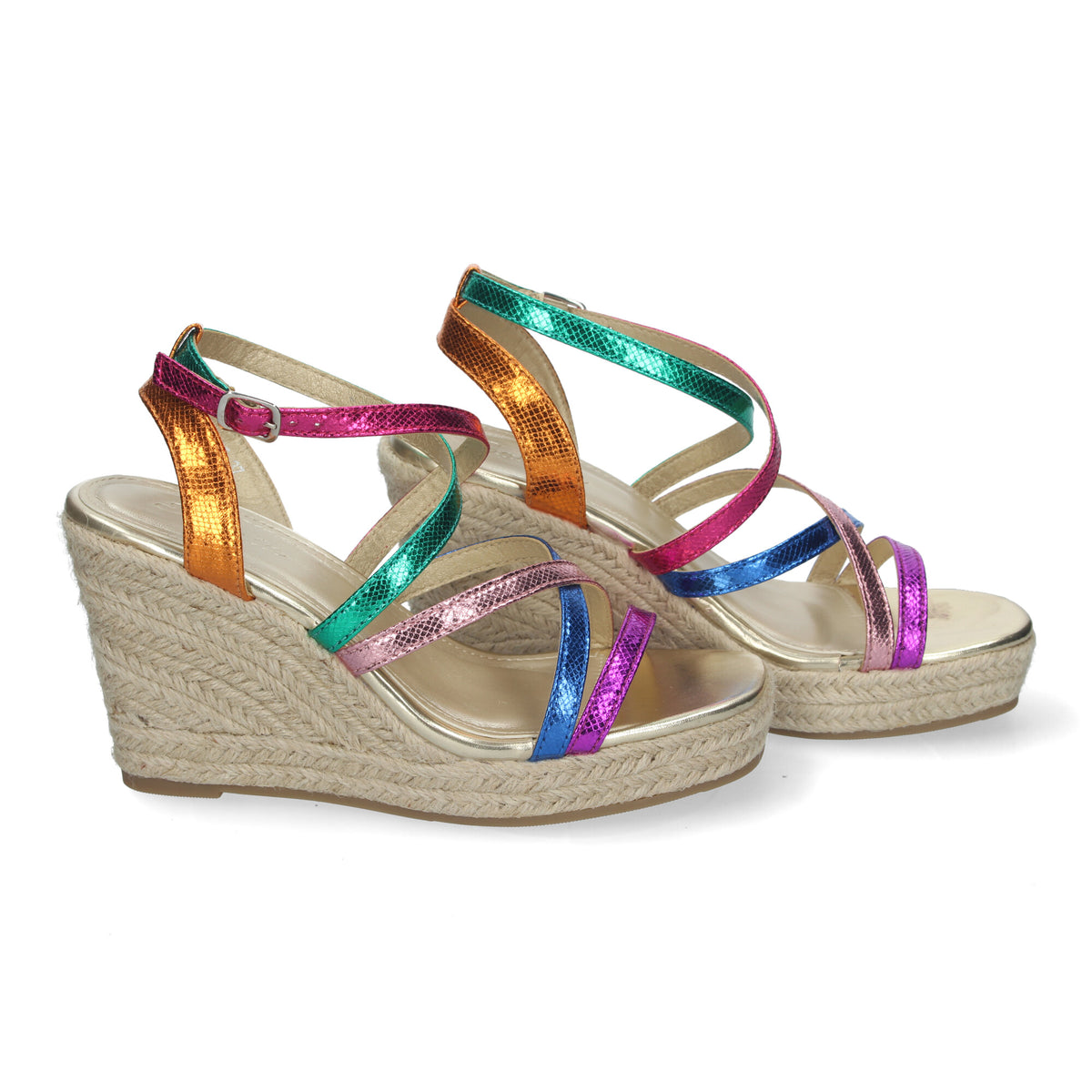Sandalias Multicolor de Cuña y esparto con tiras cruzadas para Mujer