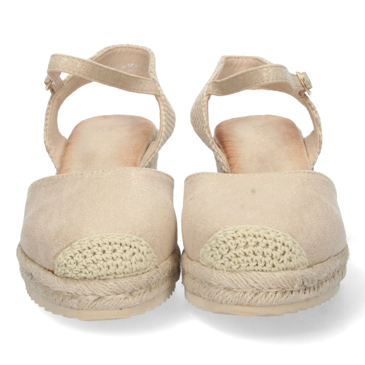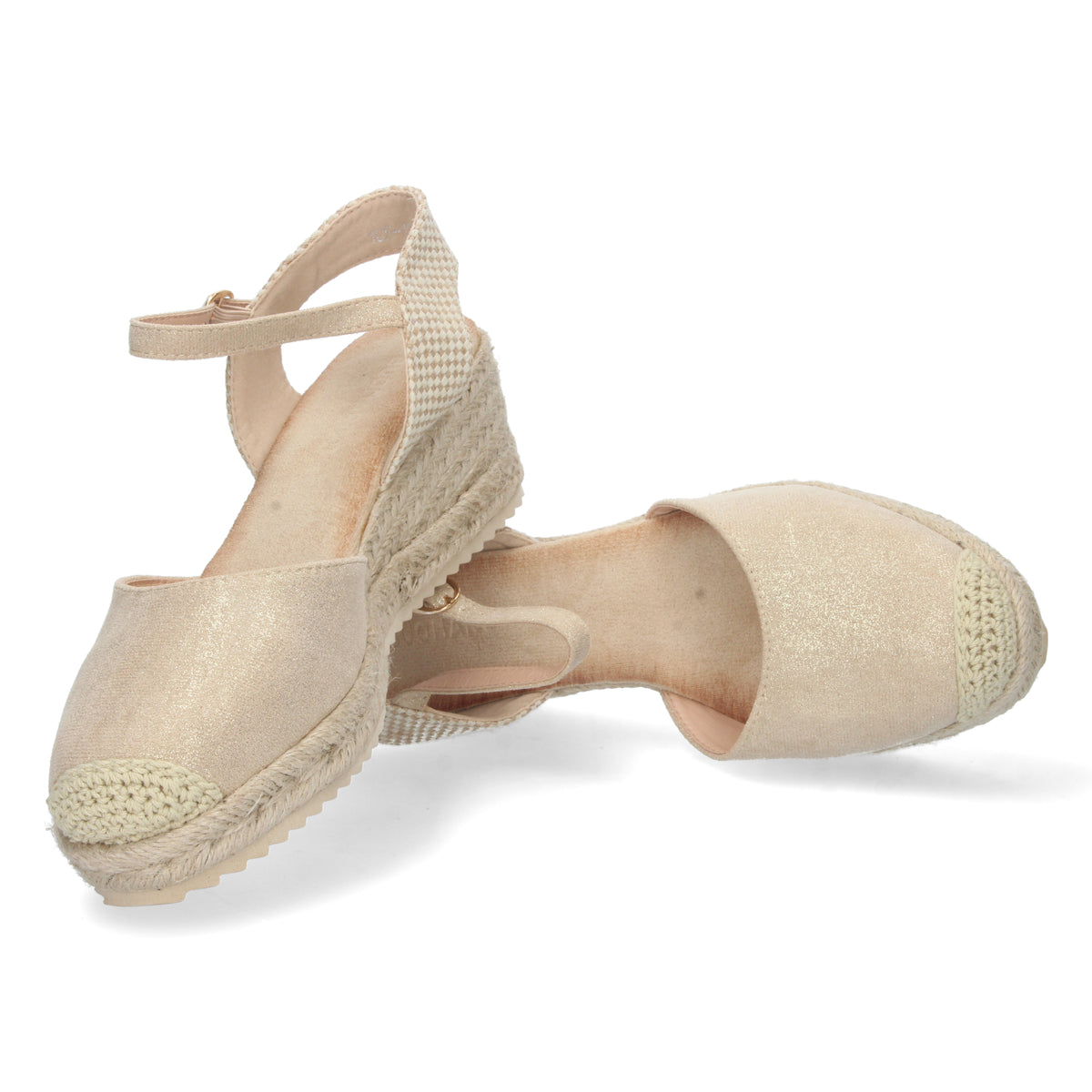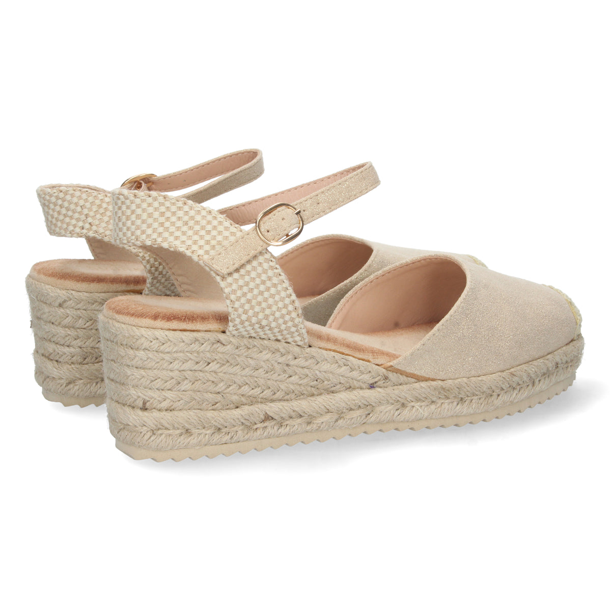 Sandalias Doradas de Cuña y esparto con pala cerrada para Mujer
