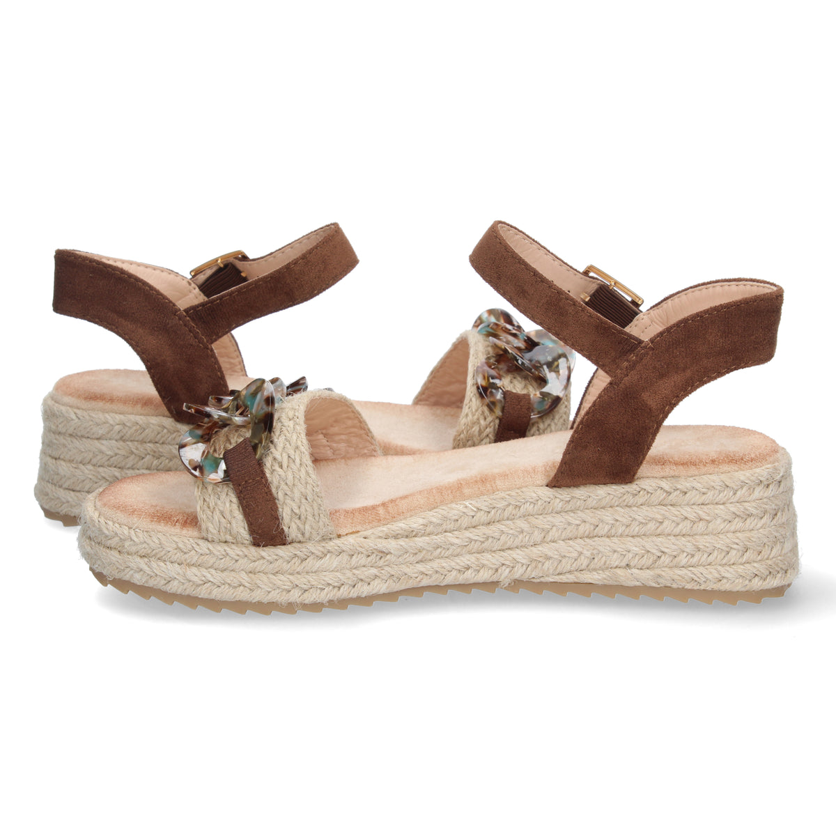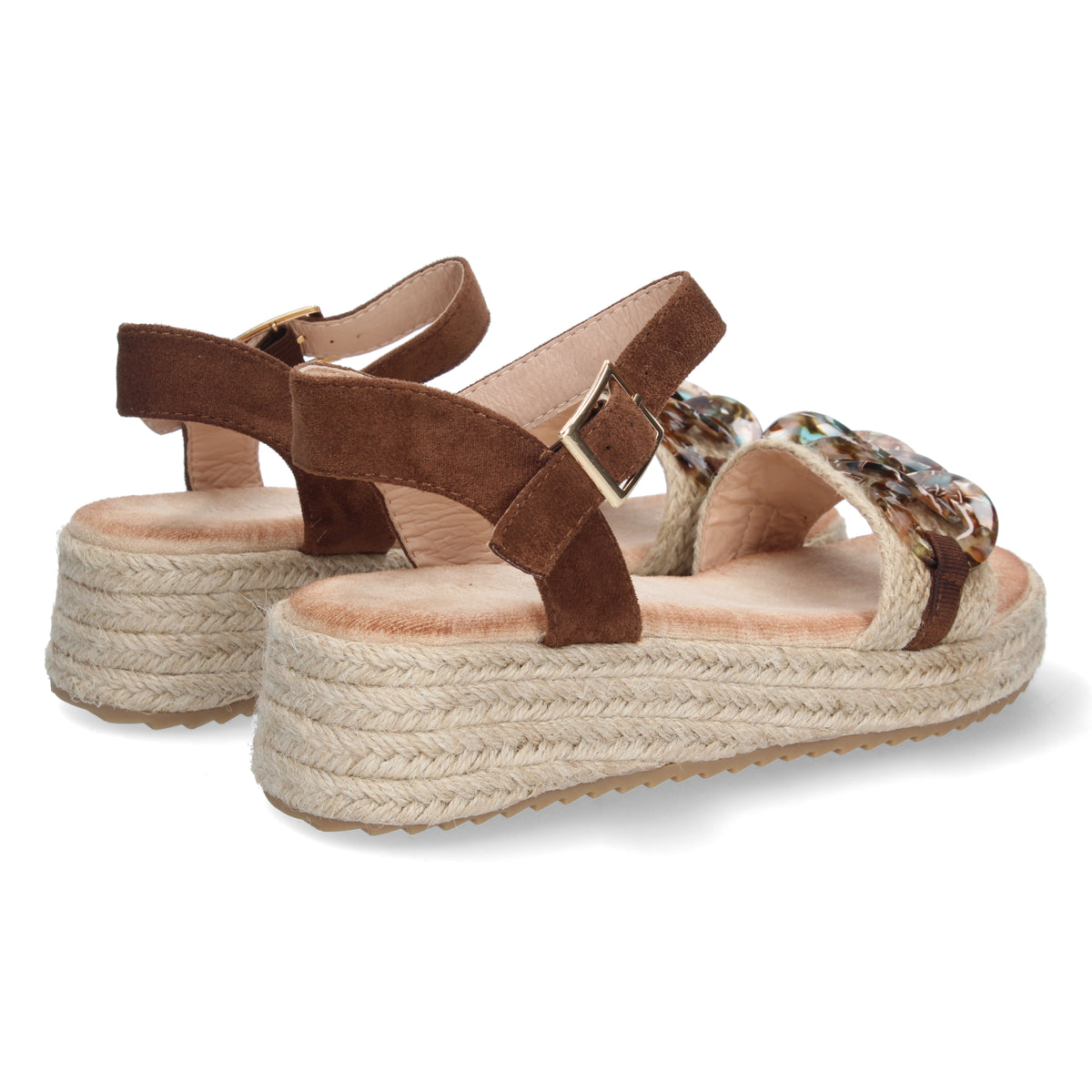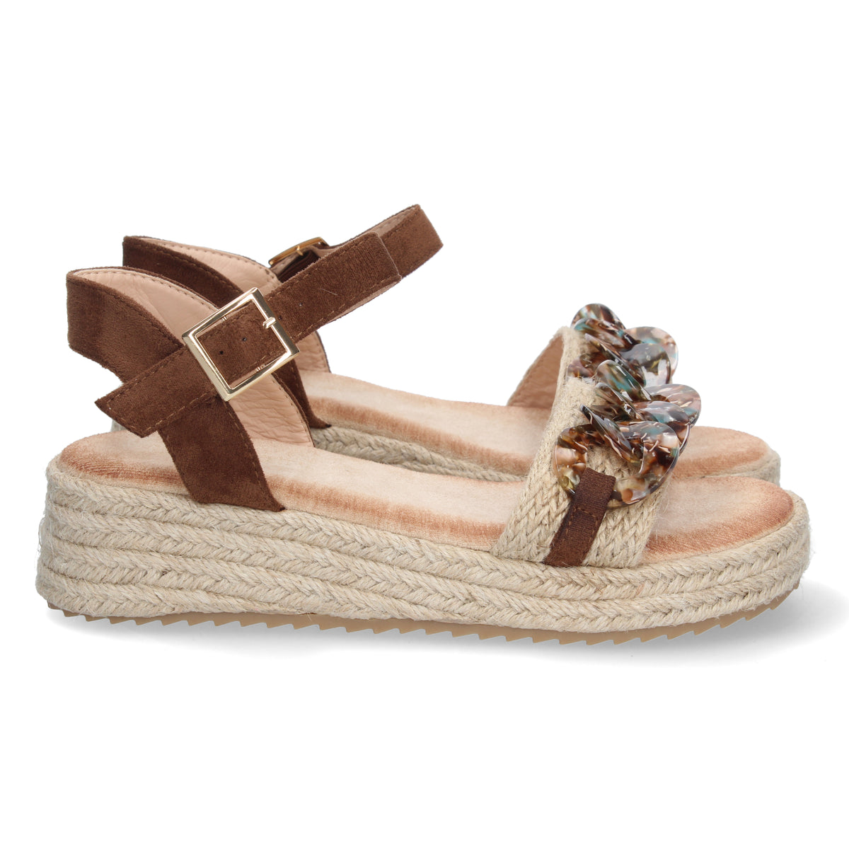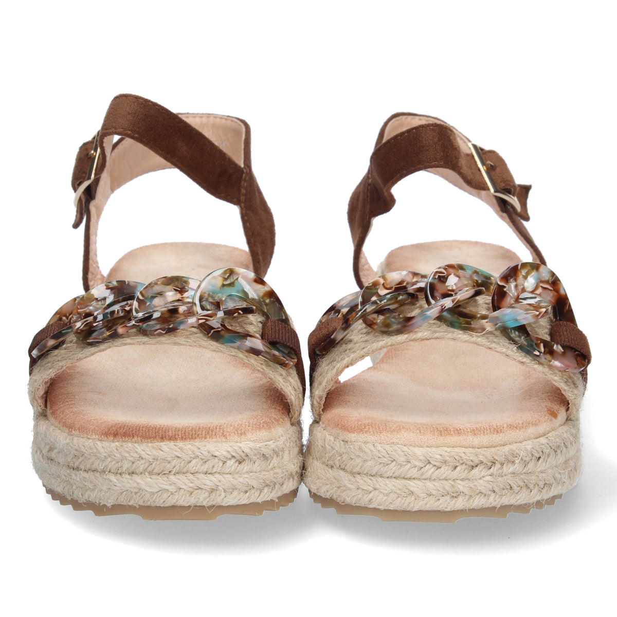 Sandalias Marrones de Plataforma con Cadena Multicolor y Hebilla para Mujer
