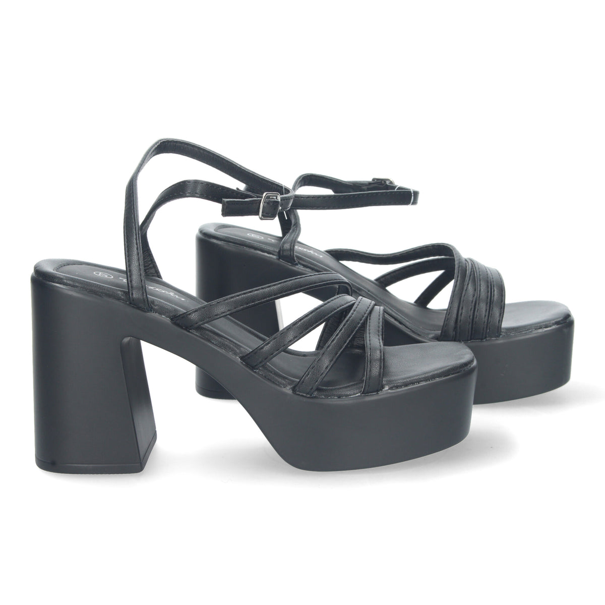 Sandalias Negras de Tacón y plataforma con tiras para Mujer