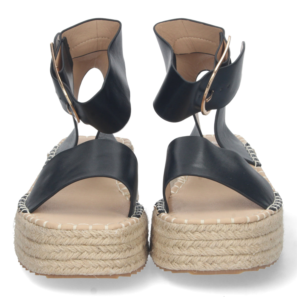 El nombre Xena, asociado a una heroína de espíritu indomable con referencias en culturas antiguas, encarna firmeza y seguridad. Estas sandalias de plataforma negras para mujer toman esa esencia para ofrecer un diseño versátil, sofisticado y funcional. La pala fina suma elegancia, el talón abierto aporta ligereza, y el cierre de hebilla al tobillo mantiene el pie en su lugar. La plataforma de 3 cm en esparto redondea una silueta que combina lo clásico y lo contemporáneo.