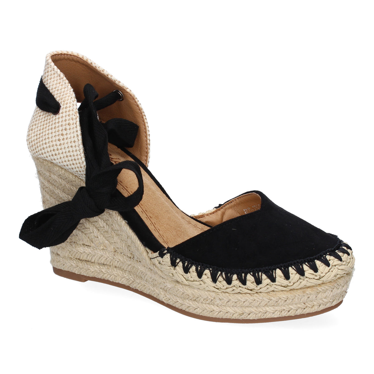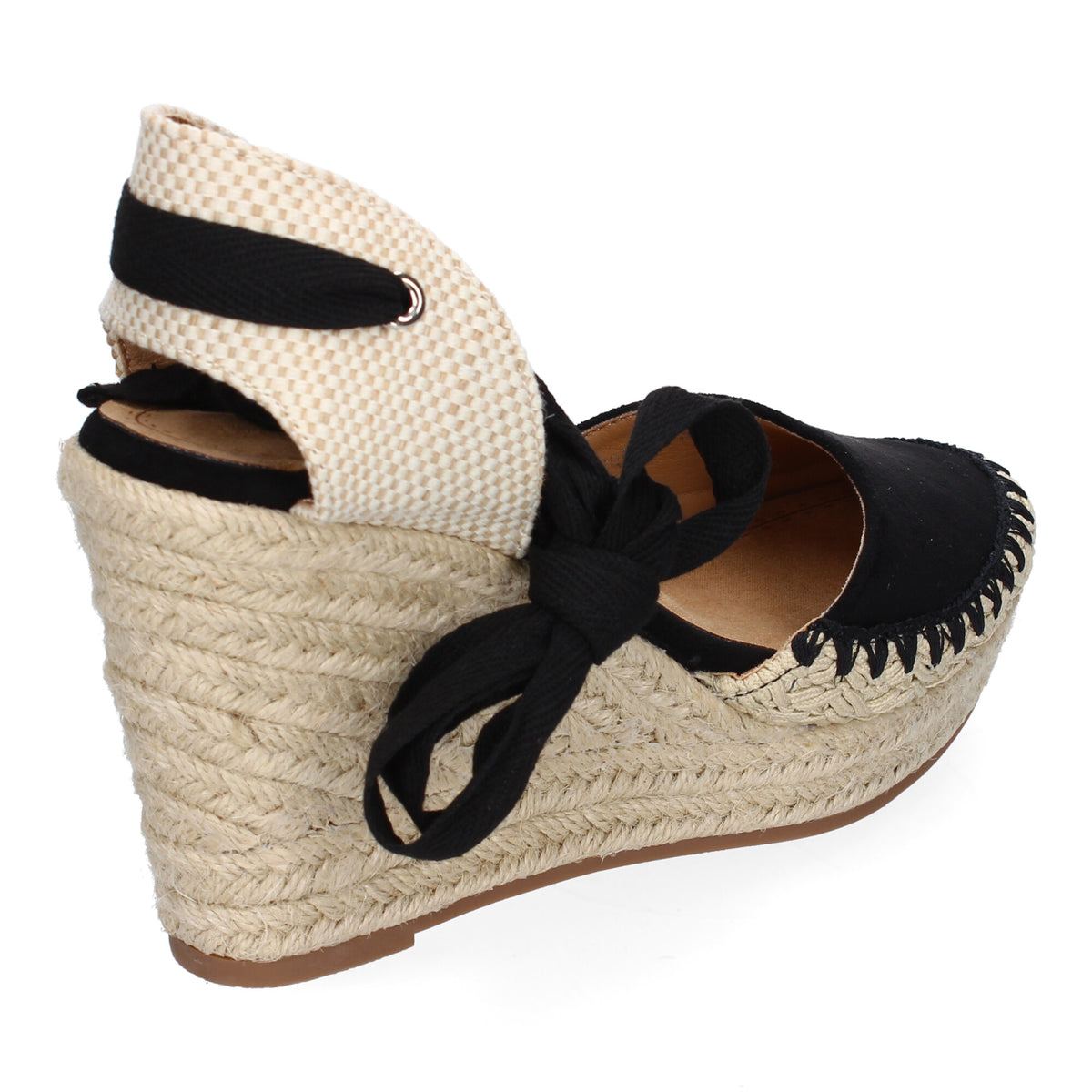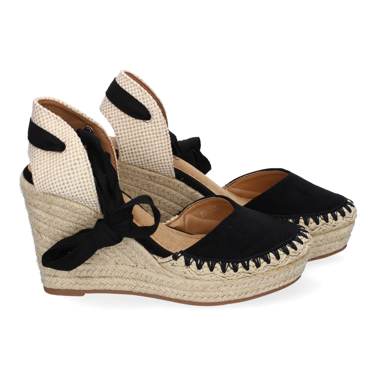 Sandalias Negras de Cuña con cintas para cierre cómodo para Mujer