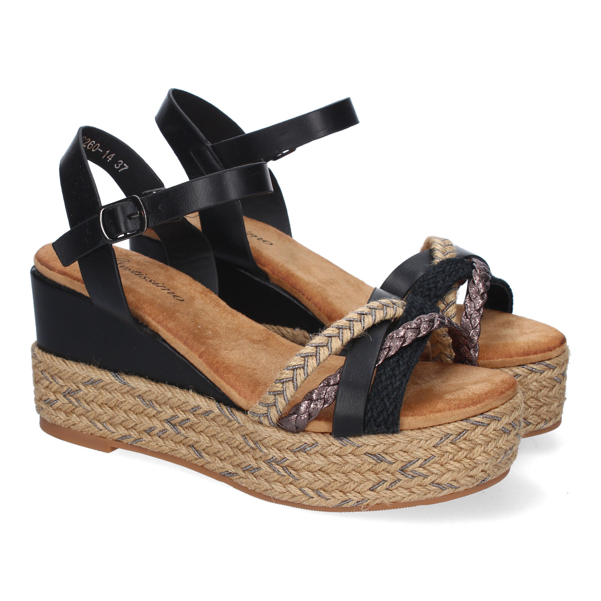 Sandalias Negras de Cuña con pala trenzada y diseño moderno para Mujer