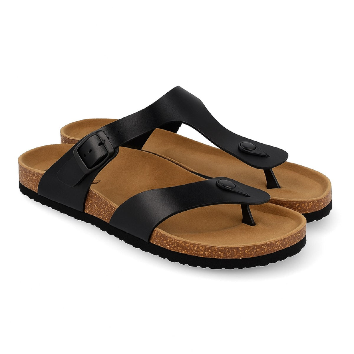El nombre Tais, figura destacada de la Grecia clásica asociada al refinamiento y al poder de atracción, inspira estas sandalias negras planas para mujer. El diseño tipo esclava se fusiona con una suela bio y una planta anatómica, pensados para brindar confort prolongado. El detalle de hebilla añade equilibrio entre estilo y funcionalidad.