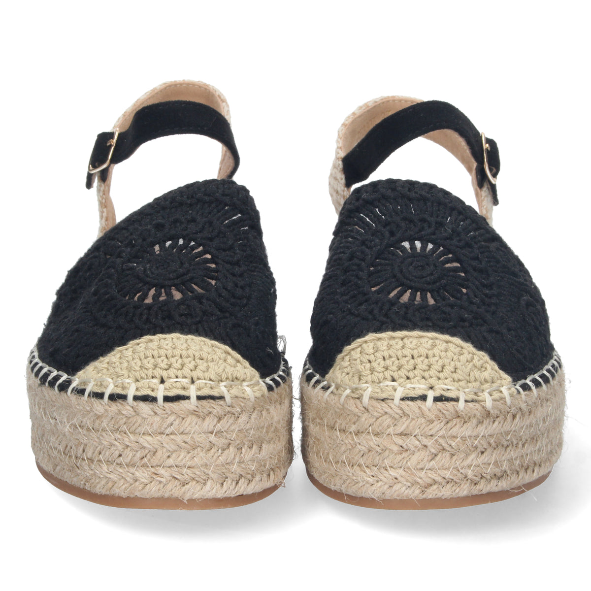 Sandalias Negras de Plataforma con Pala Entrelazada y Cierre de Hebilla para Mujer