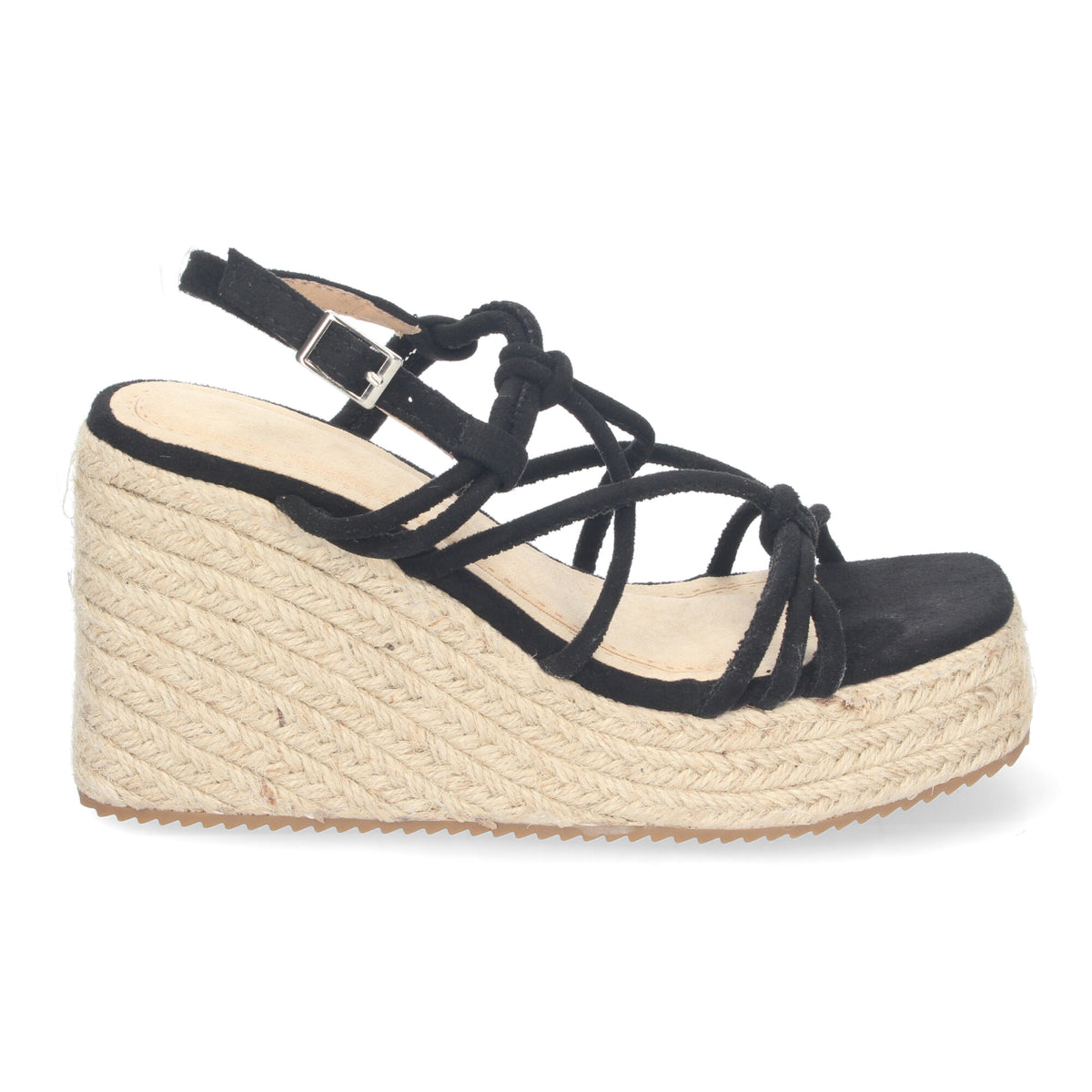 • Sandalias negras de esparto: combinan lo clásico con un toque rústico y natural.