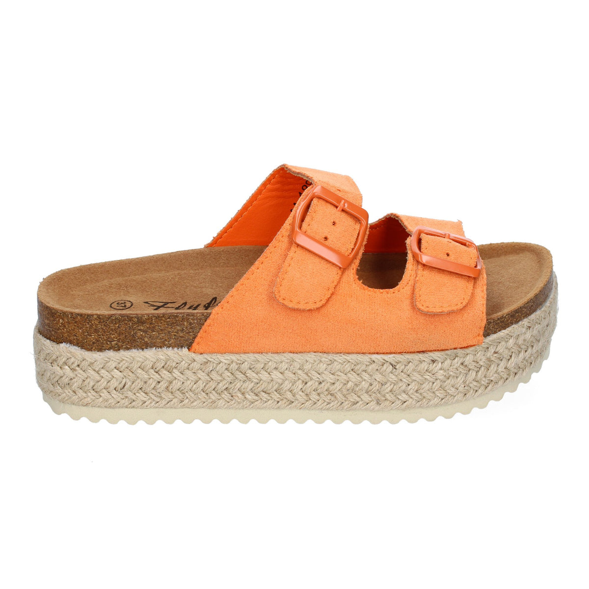 Sandalias Naranjas de Plataforma con Planta Anatómica y Hebillas para Mujer