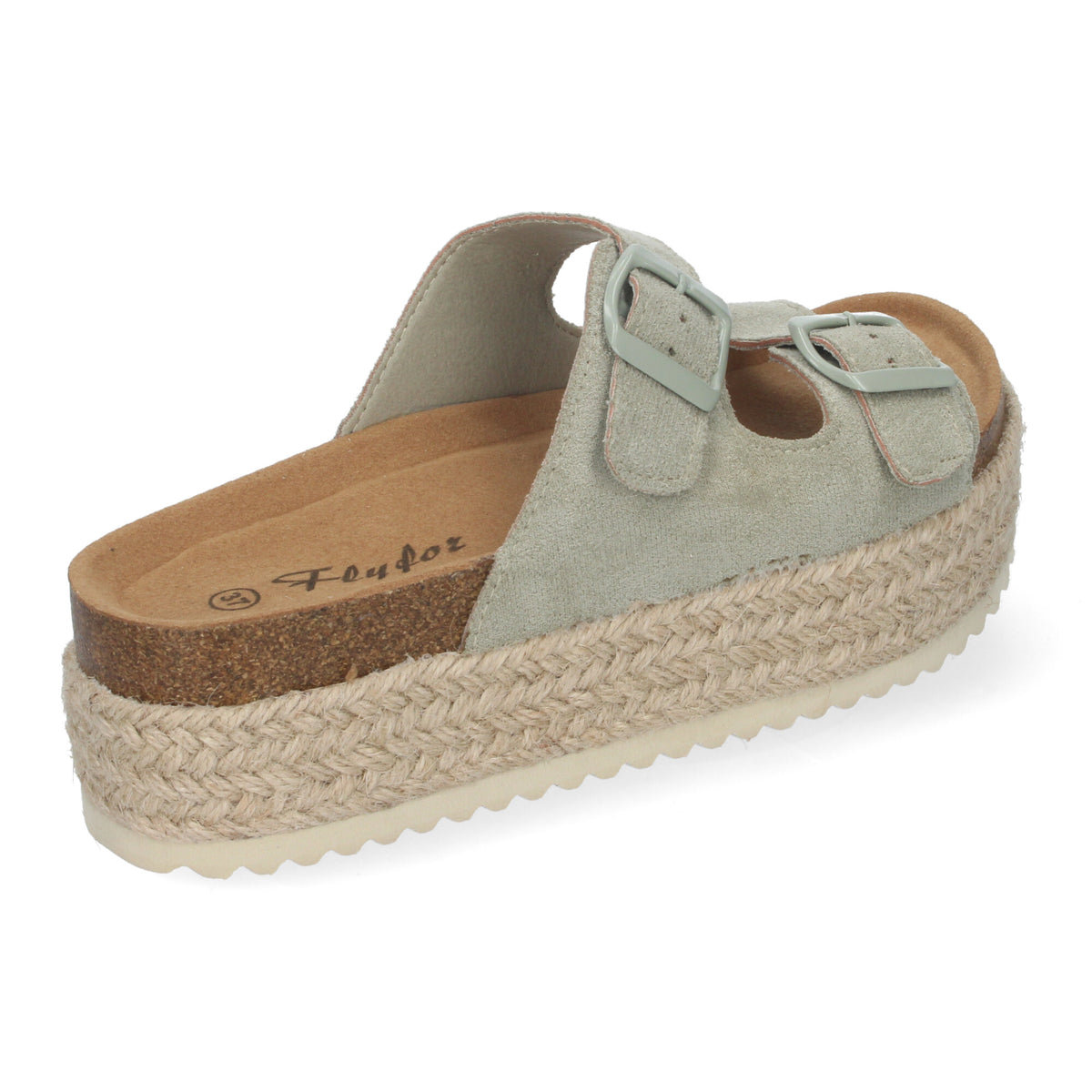 Sandalias Verdes de Plataforma con Planta Anatómica y Hebillas para Mujer