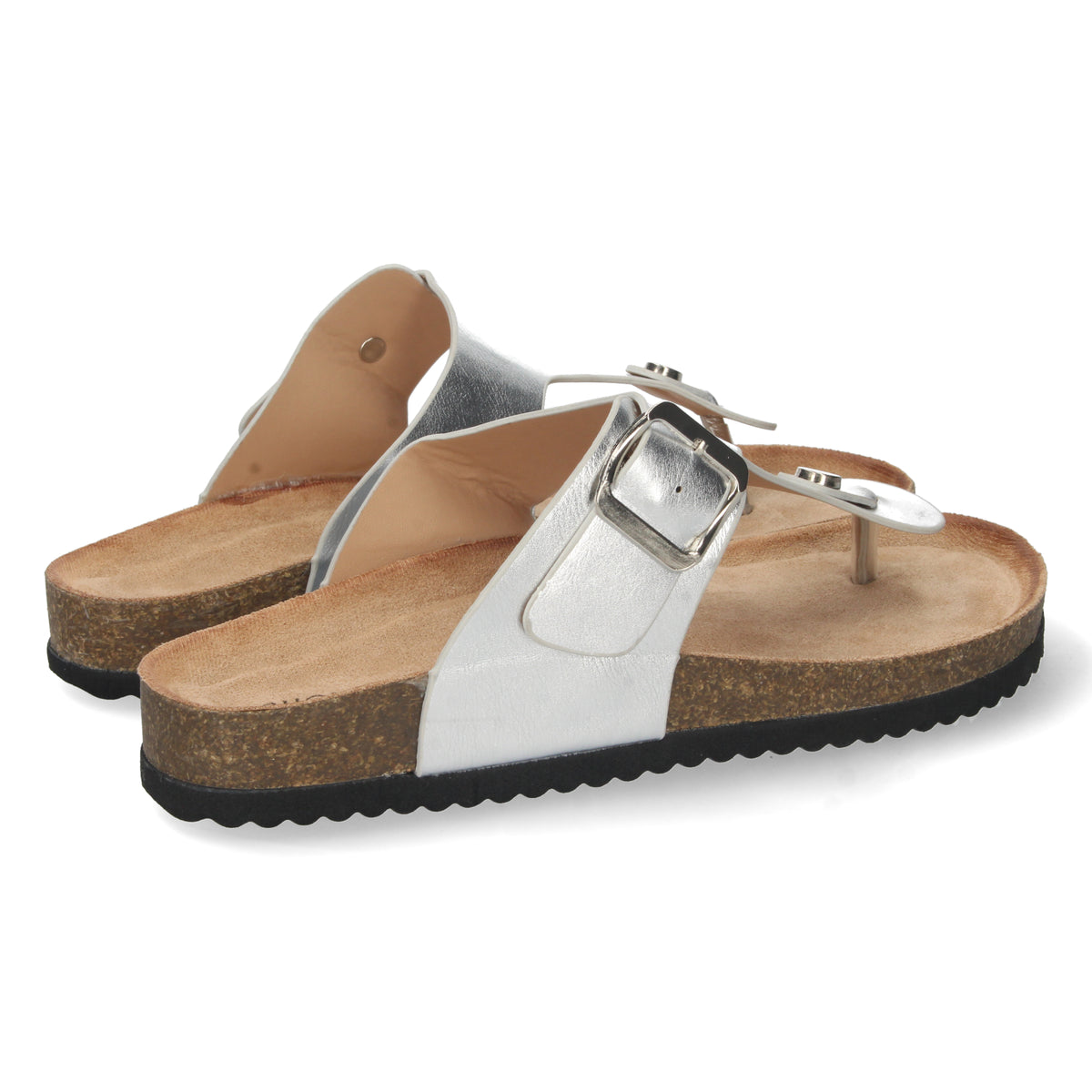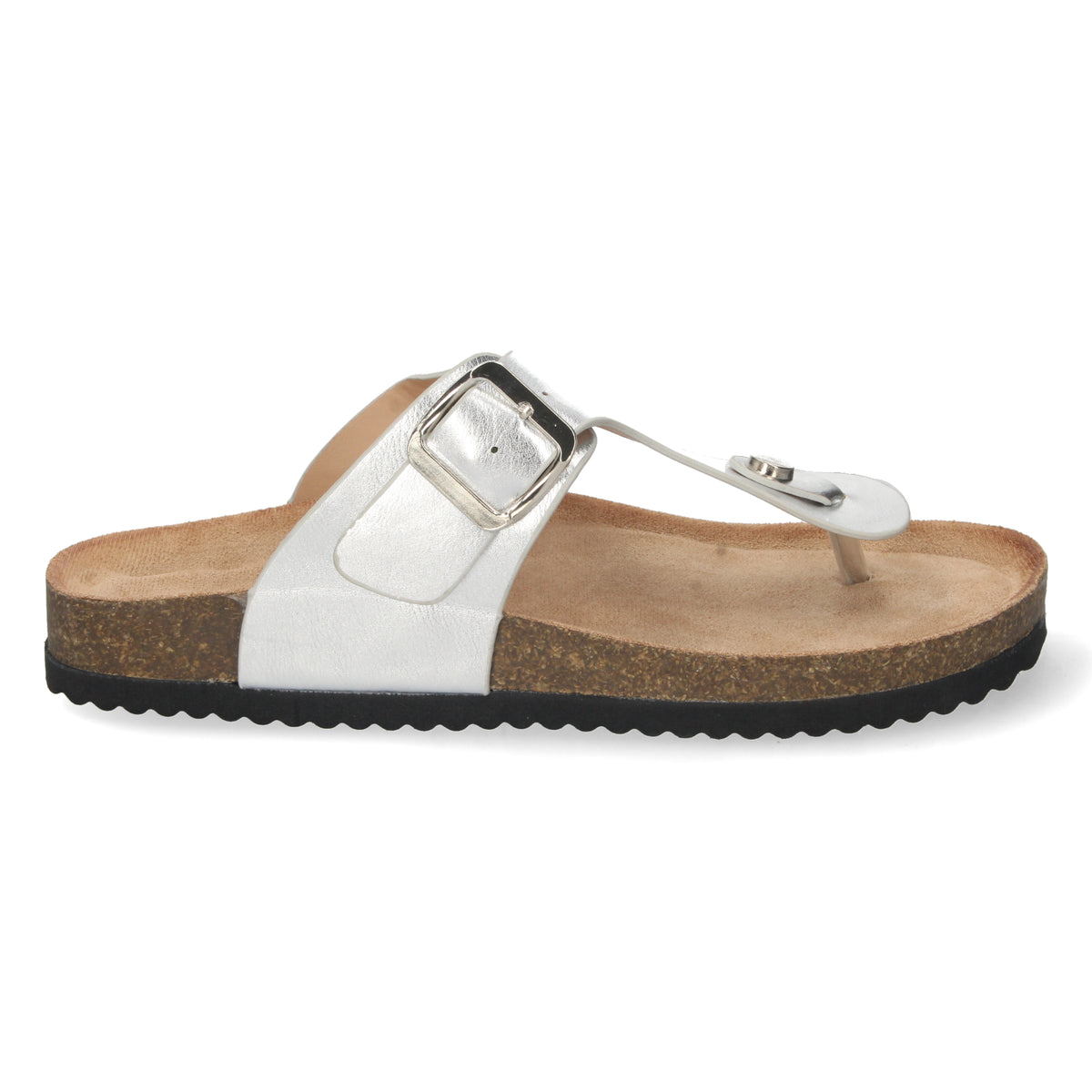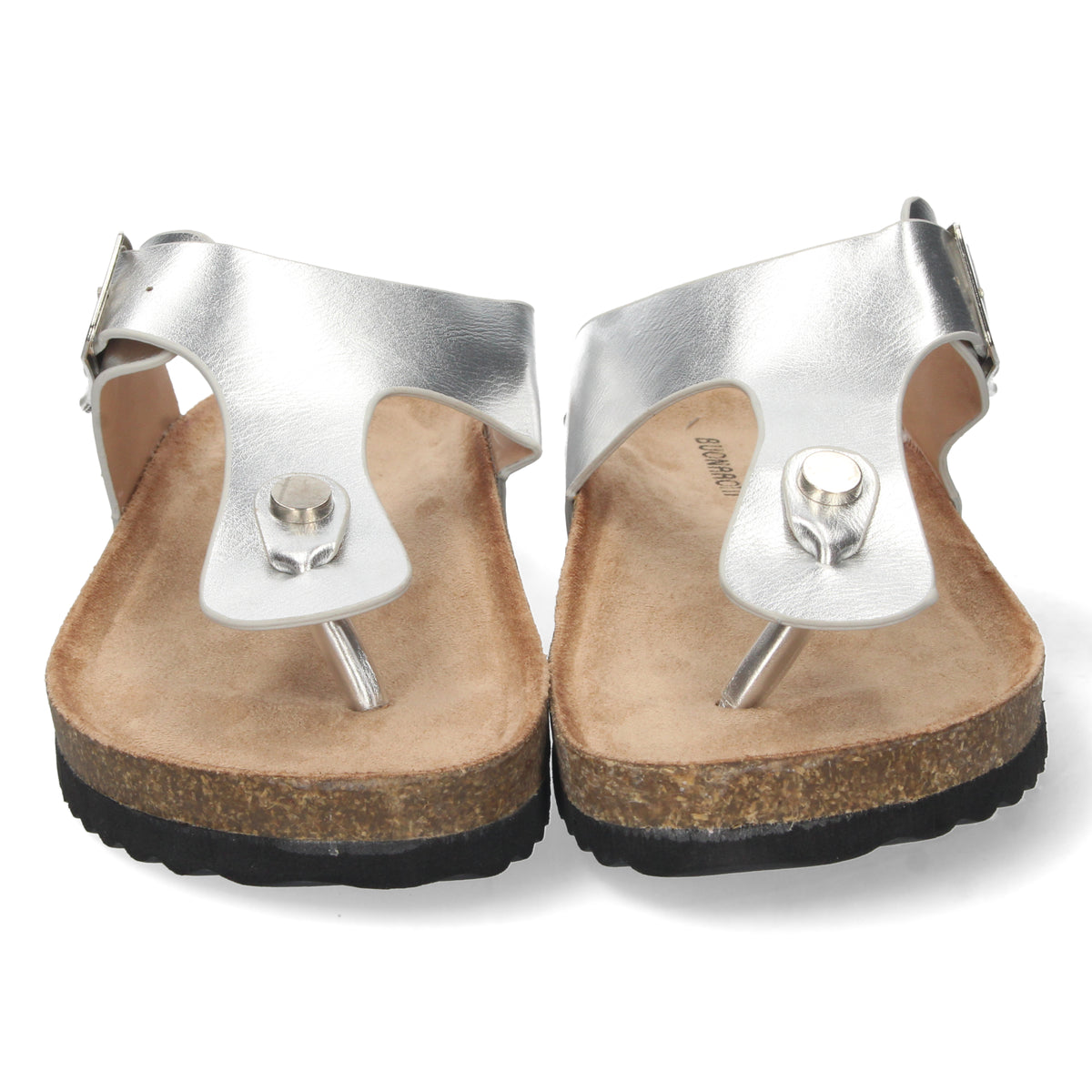 Sandalias Plateadas Planas con Planta Bio para Mujer