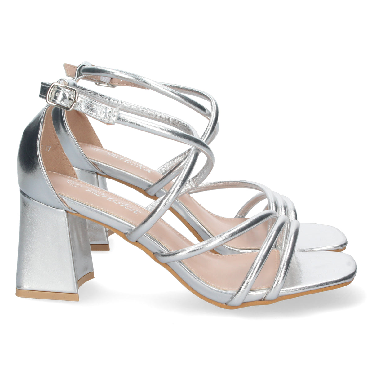 Sandalias Plateadas de Tacón con Tiras Cruzadas para Mujer