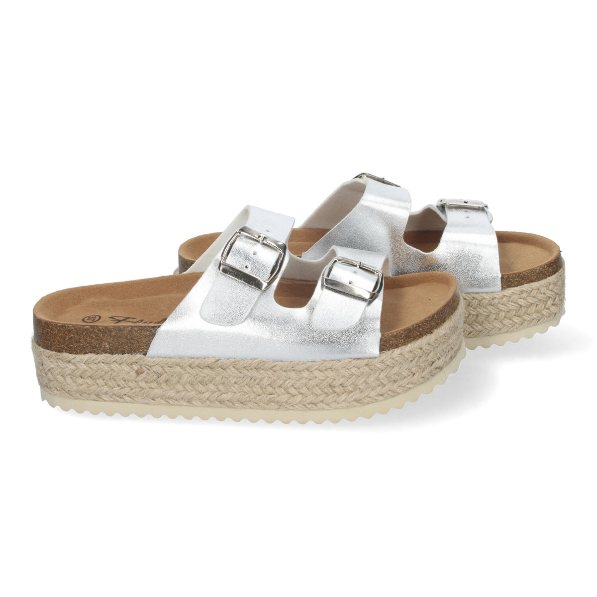 Brillo y comodidad se unen en nuestras sandalias plateadas de plataforma.
