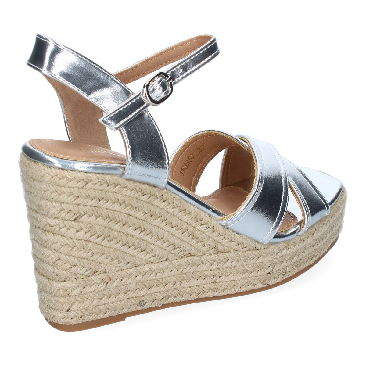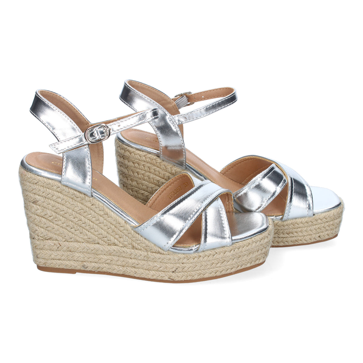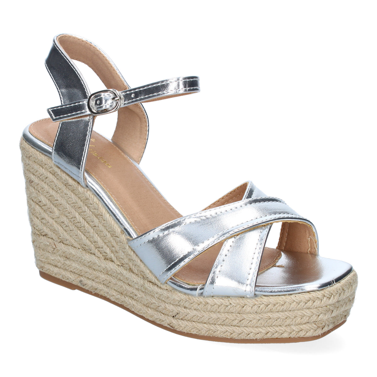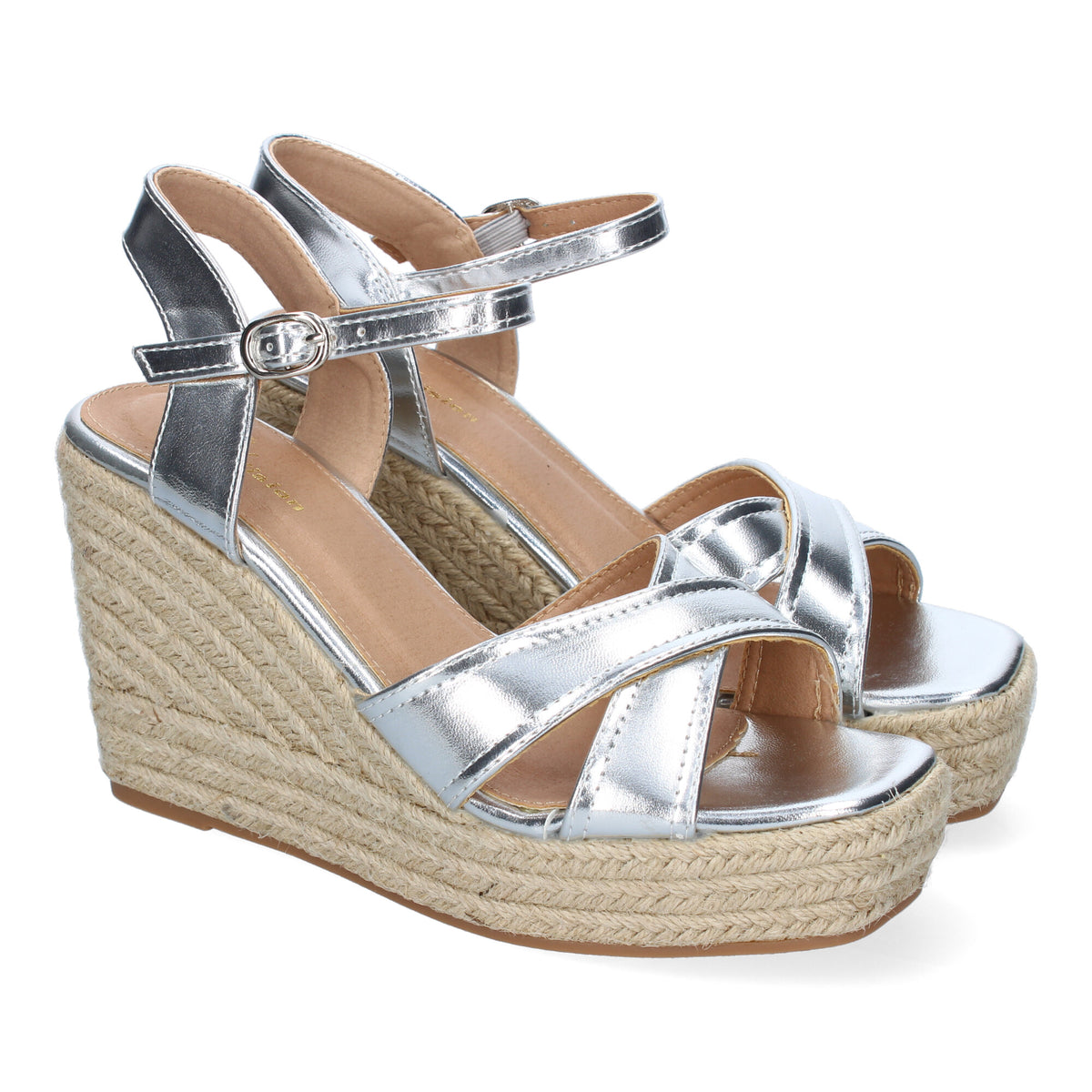 Sandalias Plateadas de Cuña con esparto y tiras cruzadas para Mujer