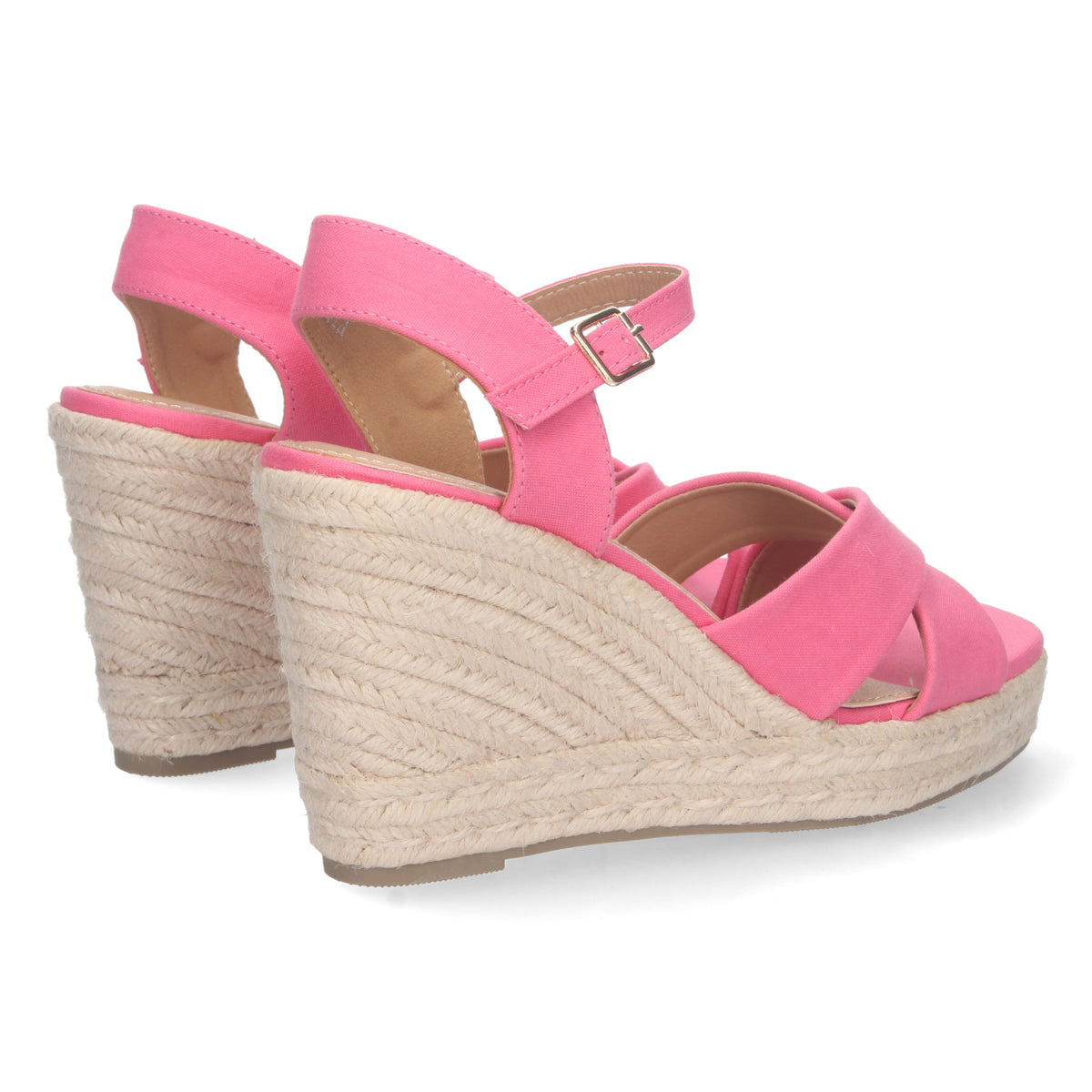 Sandalias Fucsia de Cuña y plataforma con palas cruzadas para Mujer