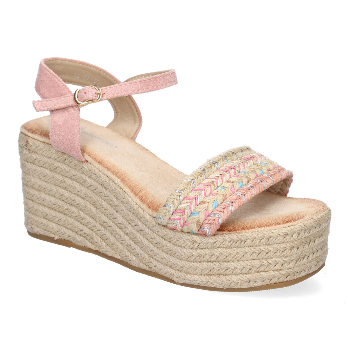 Sandalias Rosas de Cuña con pala trenzada y diseño moderno para Mujer