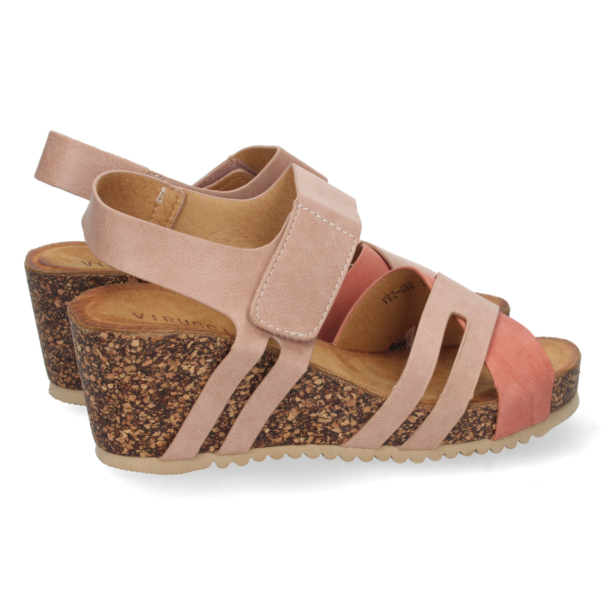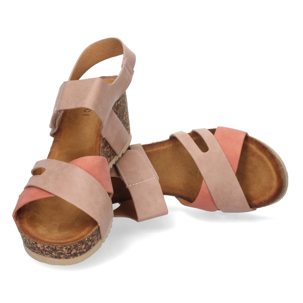 Sandalias Rosa de Cuña con Palas Cruzadas para Mujer