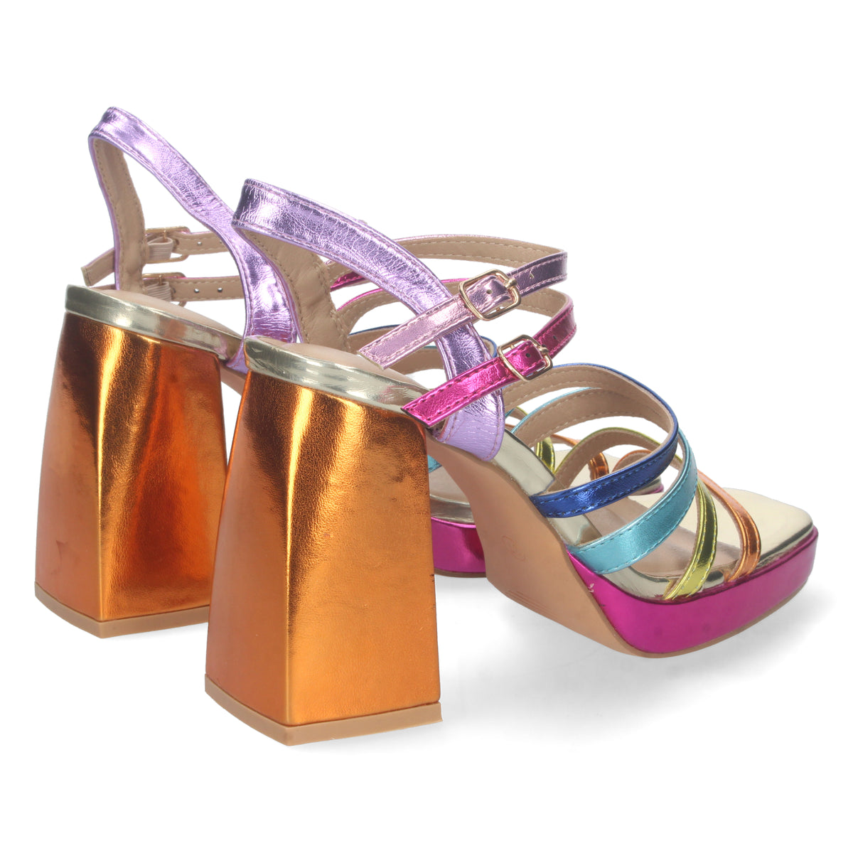 Diseños únicos para destacar: explora las sandalias de tacón multicolor.