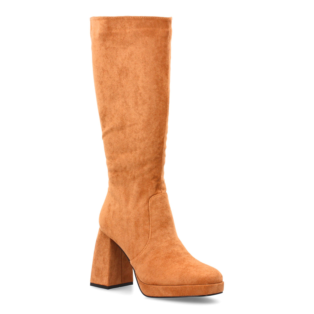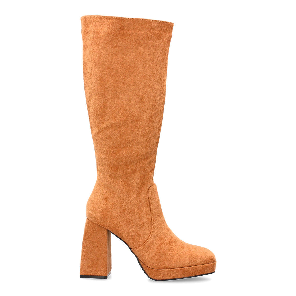 Botas Marrones Altas con Plataforma y Tacón Ancho - Diseño Clásico y Cómodo